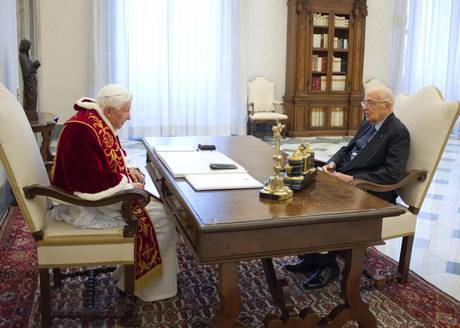 “Signor Presidente, ha trovato il tempo di venire a salutarmi”, ha detto il Papa. “No, è lei mi ha dato opportunità di rivederla”, ha risposto Napolitano. Nel corso della visita il Capo dello Stato ha accennato alla sua recente visita negli Stati Uniti e alla prossima visita in Germania. E ha regalato al Papa un’edizione rara dei Promessi Sposi. Benedetto XVI ha invece donato una stampa. Salutando il Capo dello Stato e sua moglie, il Papa ha assicurato le sue preghiere per l’Italia.