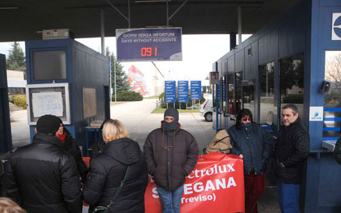 Continuano la mobilitazioni degli operai delle fabbriche del gruppo Electrolux per protestare contro la multinazionale svedese che vuole chiudere lo stabilimento di Porcia e ridurre i salari di tutti i lavoratori del gruppo .