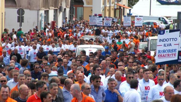 La partecipazione di operai dell’indotto Ilva, dell’Eni e della Cementir al corteo di protesta organizzato da Confindustria a Taranto il 1° agosto “in difesa dello sviluppo, dell’industria e del lavoro” ha suscitato sconcerto, dubbi e interrogativi in molti “militanti di sinistra”. “No alla città dei no” era lo slogan impresso sulla maglietta bianca indossata da molti manifestanti. Il riferimento era ai veti e agli ostacoli che stanno incontrando a Taranto gli investimenti industriali a partire da quello di “Tempa Rossa”, la base logistica del petrolio che Total, Shell e Mitsui vogliono estrarre dall’omonimo giacimento della Basilicata. Progetto che prevede che Taranto sia centro di stoccaggio e spedizione del greggio, ma che incontra, almeno per ora, l’opposizione del Comune tarantino.