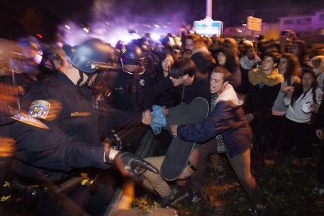 La rabbia in piazza La decisione del Gran giuri’ ha scatenato la protesta a Ferguson,dove una dozzina di edifici sono stati dati alle fiamme, macchine della poilizia distrutte, uditi anche spari. No-fly zone sulla contea del Missouri. Scontri anche nella principali citta’ americane. Da New York, a Seattle, Los Angeles, Chicago, Cleveland, Oklahoma City, Oakland e Pittsburg. A Saint Louis un poliziotto è stato ferito a colpi di pistola. A Times Square, New York, arrestato un dimostrante