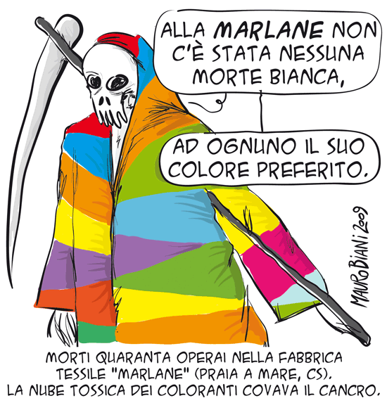 “Sono contento perché ero il principale imputato. Anche se non so di che cosa” è stato il commento di Carlo Lomonaco, l’ex sindaco di Praia a Mare che era responsabile del reparto di tintoria della Marlane. “Dopo 20 anni di indagini e 108 morti e molti ammalati, abbiamo quattro righe secondo cui tutto è finito. È una vergogna – ribattono le numerose parti civili -. La legge non è uguale per tutti. Chi ha i soldi paga e viene assolto”