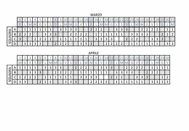 qui sotto c’è il nuovo prospetto di turnazione alla Fiat di Melfi. Si lavorerà per ora su 4 squadre (A-B-C-D).