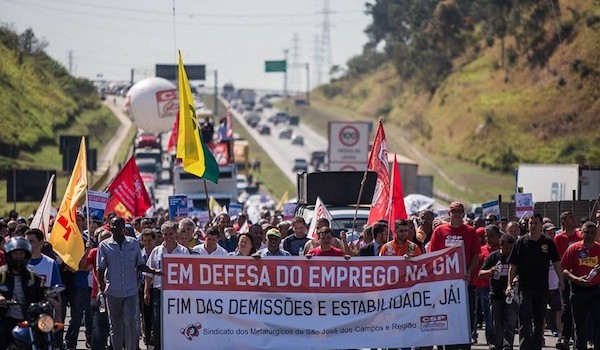 Sempre nello stato federale di San Paolo, presso São José dos Campos, l’assemblea degli operai della GENERAL MOTORS (gruppo multinazionale acquisito dalla FCA-FIAT guidata dall’amministratore delegato Sergio Marchionne) ha approvato venerdì 21 agosto l’accordo negoziato con la mediazione del Tribunale Regionale del Lavoro. Esso consiste nella conversione dei 798 licenziamenti annunciati dal padrone nell’equivalente della cassa integrazione a zero ore per un periodo di 5 mesi, al termine del quale, in caso di conferma della riduzione del personale, ogni operaio percepirà 4 mensilità più una aggiuntiva e la liquidazione.
