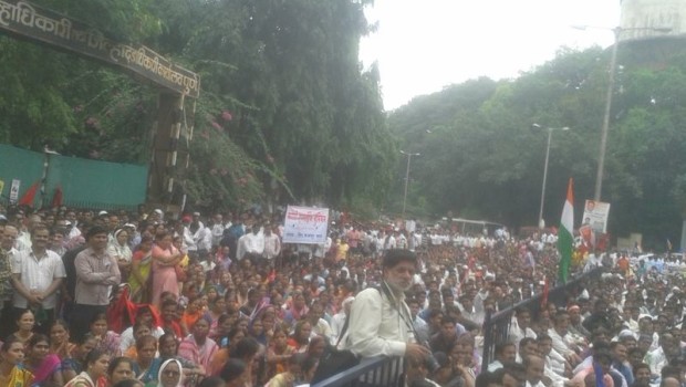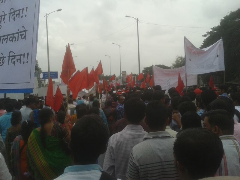 Oltre 100 mila operai hanno partecipato alla manifestazione per protestare contro le riforme del diritto del lavoro e le politiche anti-operaie del governo del fascista Modi. Dalle 11.30 uomini e donne hanno iniziato a radunarsi ed alle 12.00 l’immenso corteo è partito dal commissariato per il lavoro, terminando ad Ambdekar Putla, presso la stazione ferroviaria di Pune. Qui i rappresentanti delle organizzazioni sindacali hanno tenuto i loro comizi. Fatta eccezione per il sindacato BMS (Bharatiya Mazdoor Sangh, ovvero il Sindacato dei Lavoratori indiani, la più grande organizzazione confederale indiana, NDT) legato al partito BJP (Bharatiya Janata Party, ovvero l’ultranazionalista Partito Popolare Indiano, ora al governo con Modi, NDT) tutti i principali sindacati nazionali e della zona di Pune hanno dato ampia partecipazione e sostegno allo sciopero generale. Agli operai si sono uniti migliaia di studenti in solidarietà.