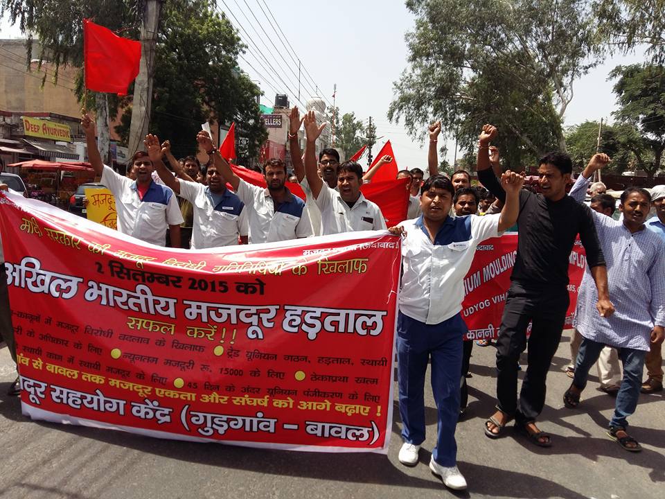 Gli operai della quasi totalità delle industrie del distretto industriale di Manesar tra cui MARUTI-SUZUKI (tutti e 4 gli impianti del distretto), HONDA, FCC RICO, BAXTER, ENDURANCE, JNS ecc… hanno colpito i padroni! Sono state poche le aziende, in particolare quelle non sindacalizzate, che hanno provato a far partire la produzione. Gli attivisti del Workers Solidarity Center hanno condotto una campagna dalle 5.00 della mattina di fronte ai cancelli di ogni fabbrica. Gli operai di INDO AUTO, dove non esiste sindacato, sono scesi dal bus ed hanno proclamato la propria adesione allo sciopero generale. Il padrone, l’appaltatore, il responsabile risorse umane insieme alla polizia sono intervenuti sul posto minacciando i presenti, ottenendo in risposta un blocco compatto e resistente. Si sono poi aggiunti gli operai dell’industria AG.
