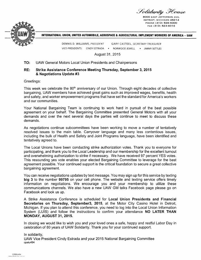 Il presidente del sindacato Dennis Williams ha dichiarato alla stampa la sua proposta di creare una cooperativa per l’assistenza sanitaria degli oltre 300 mila dipendenti, facendo così gioco alle lamentele del gruppo per l’aumento dei costi assicurativi stimati all’ 8% ogni anno, sommati alla cosiddetta “tassa cadillac” approvata con l’ Affordable Care Act del 2010 che prevede a partire dal 2018 la tassazione sulle polizze, il cui costo medio è di 10.200 dollari per ogni singolo e 27.500 dollari per una famiglia. Con un contenimento delle spese di settore, il gruppo sostiene che “EVENTUALMENTE si potrebbero assumere nuovi operai per espandere le operazioni negli Stati Uniti d’America”.