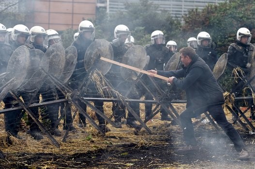 Settemila agricoltori europei hanno assediato con 1.500 trattori i palazzi governativi dell’Unione europea a Bruxelles scontrandosi con la polizia in tenuta antisommossa. Contro i poliziotti schierati a difesa delle sedi governative europee gli agricoltori hanno fatto avanzare i trattori per sfondare gli sbarramenti di cavalli di frisia e filo spinato, hanno incendiato balle di paglia, hanno lanciato pietre, uova, paglia, petardi, cartelli stradali e assi di legno. Resistendo a cariche, gas lacrimogeni e idranti, hanno sfidato per ore la polizia.