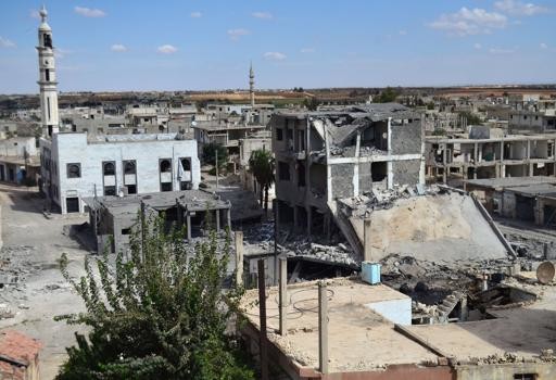 Nella foto Una veduta di Talbisseh, cittadina a una decina di chilometri da Homs, in una foto del 30 settembre. La città è stata bombardata dai caccia russi