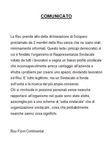 Ma come???? Ma se uno dei coordinatori era d’accordo ed ha anche chiamato i lavoratori a fare sciopero….cos’è successo dopo? E’ stato richiamato all’ordine o gli piace rimangiarsi le parole?