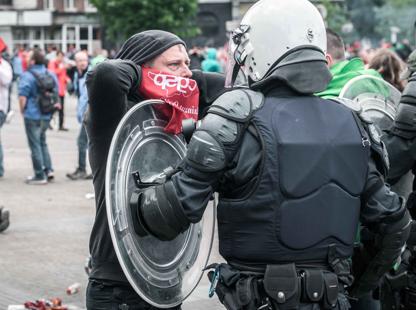 Scontri a Bruxelles tra polizia e manifestanti al corteo di protesta contro l’austerità. Le forze dell’ordine hanno usato lacrimogeni e cannoni ad acqua per disperdere i manifestanti. Una decina di teppisti, alcuni di questi col volto coperto, hanno attaccato la polizia durante la manifestazione alla Gare du Midi a Bruxelles, col lancio di petardi e oggetti come pietre e bottiglie. Le forze dell’ordine hanno risposto caricando e usando un cannone ad acqua e spray al peperoncino per respingere i manifestanti. L’atmosfera è tesa, un elicottero sorvola la zona. Otto persone e due agenti di polizia sono rimasti feriti negli scontri al corteo alla stazione di Midi di Bruxelles. Il numero dei fermi resta incerto, secondo l’agenzia di stampa Belga. La polizia sta tentando di respingere i teppisti con l’acqua. Sul posto è arrivata anche una terza autobotte.