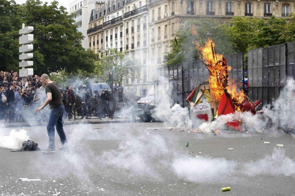 Ottavo giorno di mobilitazione, il blocco delle raffinerie e dei depositi di carburante, da ieri lo sciopero anche in 19 centrali nucleari. La riforma del lavoro rischia di paralizzare la Francia per le proteste dei lavoratori e dei sindacati. A Parigi una nuova manifestazione ha visto partecipare almeno 20mila persone: sono numeri superiori a quelli della settimana scorsa. Sono state arrestate 16 persone per i disordini scoppiati lungo il cammino del corteo che da piazza della Bastiglia è arrivato a Place de la Nation. Le frange più violente hanno lanciato oggetti contundenti contro gli agenti che hanno risposto con cariche e lacrimogeni. Danneggiato anche l’arredo urbano, fiore all’occhiello della capitale. I primi disordini sono scoppiati quando una parte dei dimostranti – un centinaio circa con il volto coperto – ha deviato dal percorso seguito dal corteo, ha scagliato bottiglie contro gli agenti, ha infranto vetrine e danneggiato automobili. La polizia ha reagito facendo ricorso ai gas lacrimogeni. Violenze si sono verificate anche in altre località della Francia. A Bordeaux l’attacco ad un commissariato si è concluso con un ferito, mentre a Nantes la polizia ha fatto uso di lacrimogeni e due banche sono state danneggiate.