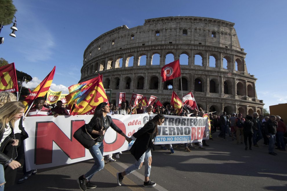 Fimalmente una processione di ” sinistra”. Sono in 40mila, a detta degli organizzatori, i partecipanti al corteo indetto dal “Coordinamento No Sociale” per dire un “secco NO” al referendum del 4 dicembre “al tentativo di Renzi di stravolgere la Costituzione e i diritti, a cominciare da quello del lavoro”. Colore prevalente: il rosso, delle bandiere del Partito di Rifondazione Comunista, del Partito Comunista dei Lavoratori, del Pci e dell’Unione dei sindacati di base