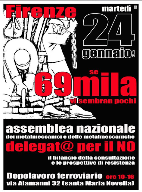 68.695 metalmeccanici hanno invece votato no. E l’hanno fatto con altrettanta coscienza. Soprattutto dove sono stati raggiunti dalla campagna per il no. Una campagna promossa con volantini e passaparola da delegati e lavoratori senza alcuna riconoscimento né legittimità da parte delle strutture. Anzi spesso duramente contrastata da esse. Hanno votato no alcune tra le aziende sindacalmente più forti e militanti. Quelle su cui un sindacato deve appoggiarsi se vuole dare vita a una stagione di mobilitazione. Quelle di cui la maggioranza della Fiom dovrebbe disperarsi per aver perso, perché non avere il loro consenso rende potenzialmente ancora più difficile una prospettiva di mobilitazione.