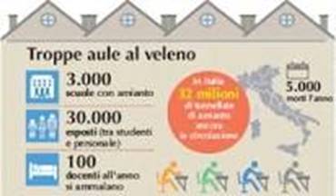 Secondo l’Osservatorio nazionale amianto sono 2400 le scuole contaminate dalla fibra killer. Circa 300 mila tra studenti e lavoratori esposti.