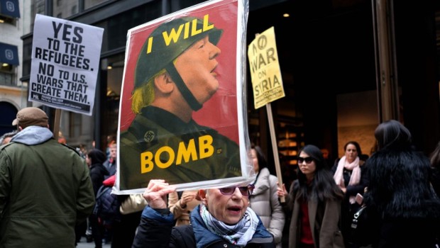 Giù le mani dalla Siria” e “No alle bombe in Siria”. Sono i principali slogan scelti dai manifestanti a Washington, New York e a Chicago per protestare contro la decisione del presidente americano Donald Trump di lanciare 59 missili alla base aerea siriana di Shayrat, nella provincia occidentale di Homs.