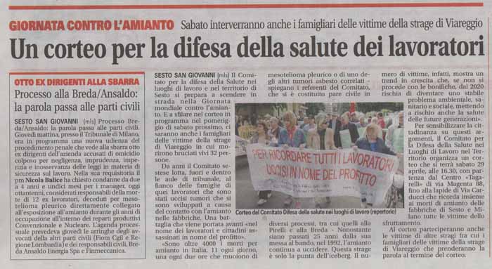 giornata contro l’amianto: CORTEO 29 APRILE: Posted by Operai Contro 27 Aprile 2017 corteo sabato 29 aprile 2017. Manifesto-locandina corteo 29 aprile 2017- Comitato per la Difesa della Salute nei Luoghi di Lavoro e nel Territorio Condividi sui social:
