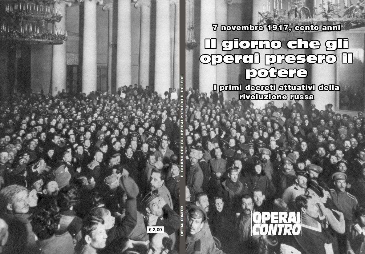 Cento anni dalla Rivoluzione russa, ognuno la racconta secondo i propri interessi di classe. I ricchi la maledicono, gli storici borghesi la reinterpretano come un colpo di stato di un uomo, di un partito. A chi vive di nostalgia basta uno sventolio di bandiere. Per noi è stata la presa del potere da parte degli operai. Per l’occasione abbiamo prodotto un opuscolo di 85 pagine in formato A5: “Il giorno che gli operai presero il potere” “Decreti attuativi della rivoluzione russa” Qui allegate potete trovare le prime 10 pagine che ne spiega il contenuto. L’opuscolo ha un prezzo di […]