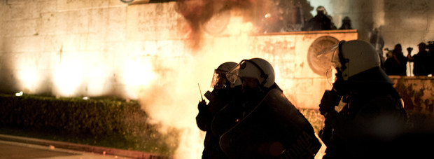 Violenti scontri sono scoppiati questa sera davanti al parlamento di Atene, durante una manifestazione di migliaia di persone contro la riforma del diritto di sciopero che verrà messa più tardi ai voti in parlamento