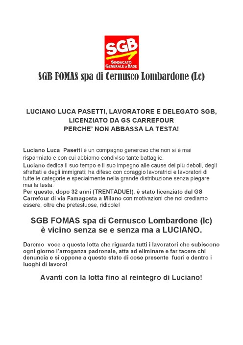 FOMAS: LA LOTTA PER IL REINTEGRO DI LUCIANO