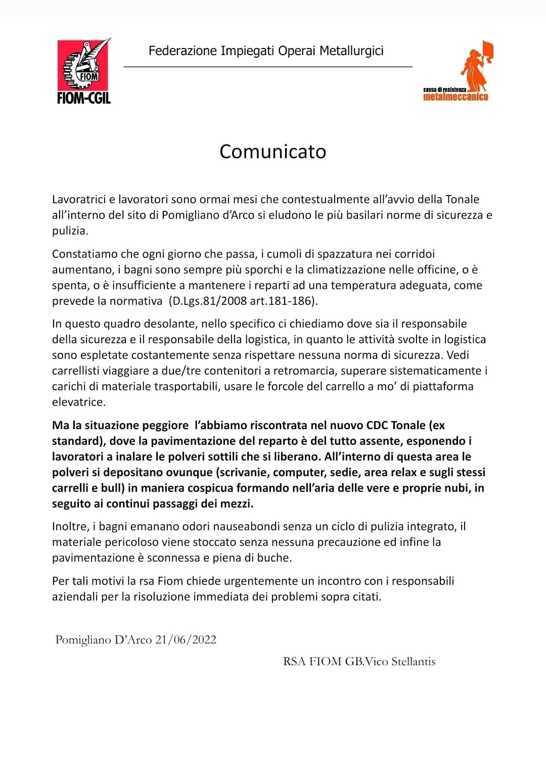 Inoltre qualche giorno fa c’è stato un incendio (https://www.ilmattino.it/napoli/cronaca/incendio_stellantis_pomigliano_oggi_ultime_notizie-6771488.html – https://www.cronachedellacampania.it/2022/06/pomigliano-incendio-stellantis/ ) dove hanno preso fuoco, a quanto pare, due contenitori vuoti di plastica e le sterpaglie.