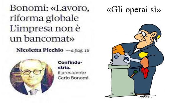 Premettiamo a Bonomi che finora “a farsi male” sono stati gli operai colpiti dai sacrifici imposti in conseguenza proprio a quel patto sociale!