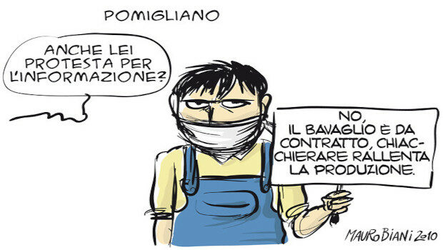 Nel giro di 10 giorni circa è stato annunciato un aumento di produzione da 345 auto a turno a 375 auto a turno; rigorosamente sempre con lo stesso numero di operai a lavorare; rigorosamente sempre peggiorando le condizioni di lavoro; e purtroppo inevitabilmente rendendoci sempre più schiavi. Non in molti, ma ho notato sguardi persi nel vuoto, rassegnati, consapevoli del fatto che ormai la tutela non esiste più. Ecco, obiettivo raggiunto anche se oggi è solo la conferma che l’azienda fa quello che vuole, incontrastata, perché ormai il sindacato, “bidello” o “finto rivoluzionario” che si tratti, non serve a niente e non fa nulla. Per questi ultimi l’unica cosa da portare a casa è la salvaguardia del proprio sedere.