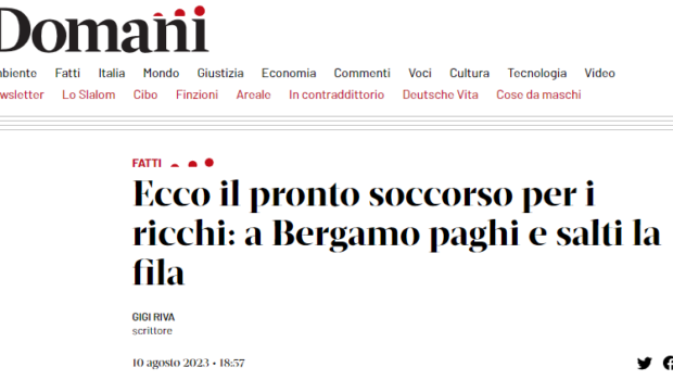 La recente notizia che, per la prima volta, in un ospedale privato della provincia di Bergamo (Policlinico San Marco di Zingonia) e in un ospedale di Brescia (BresciaMed) hanno aperto due reparti di Pronto Soccorso non ha suscitato la visibilità che meritava.