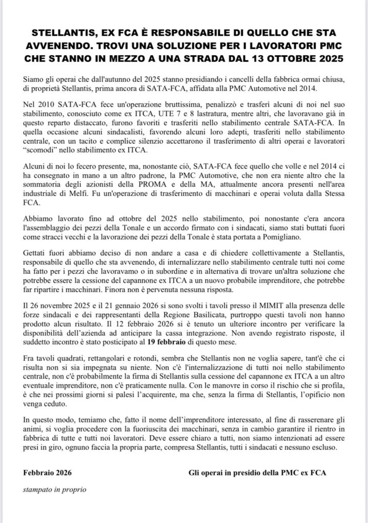 La novità è che sono gli operai stessi a fare un bilancio della loro lotta, ad indicare la soluzione possibile oltre i soliti riti degli incontri al MINIT fra una Stellantis che nemmeno si presenta al tavolo, i rappresentanti della regione Basilicata e le forze sindacali che oltre i soliti generici impegni non riescono a portare a casa nessun risultato. Il presidio continua indistruttibile.